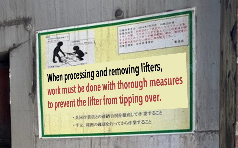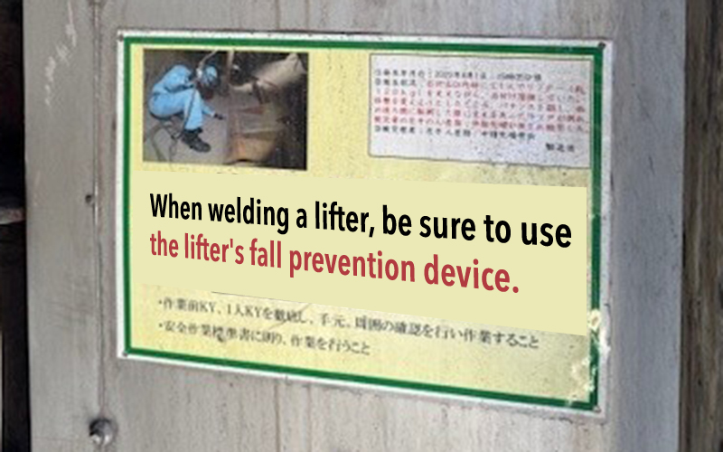 We are promoting activities to pass on lessons learned from accidents by posting accident information as cautionary reminders at accident sites. Visualization activities raise awareness of rules and encourage mutual attention, leading to improved safety awareness.