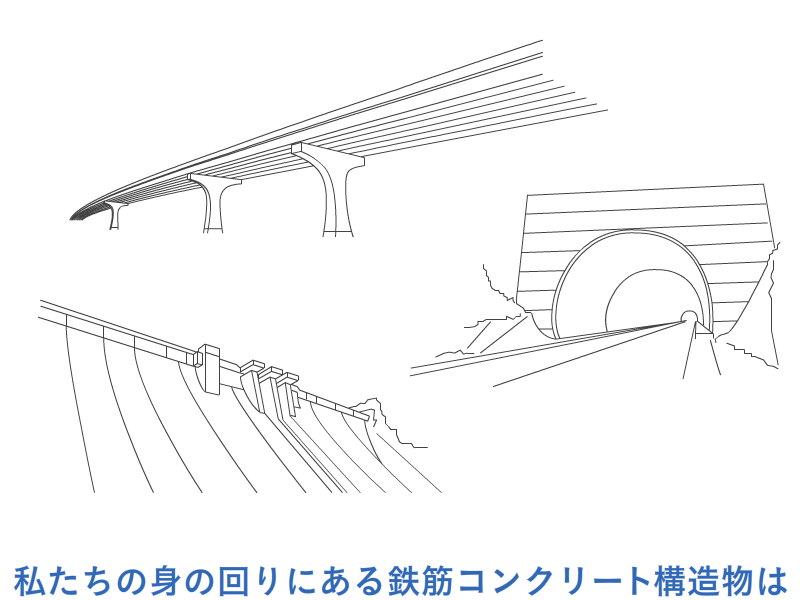 RFID構造物診断技術は、コンクリート内部に埋設されたセンサの状態を無線で計測することが可能です。データ通信部のRFIDタグとセンサを離して設置することで、高所箇所などの計測が容易になります。