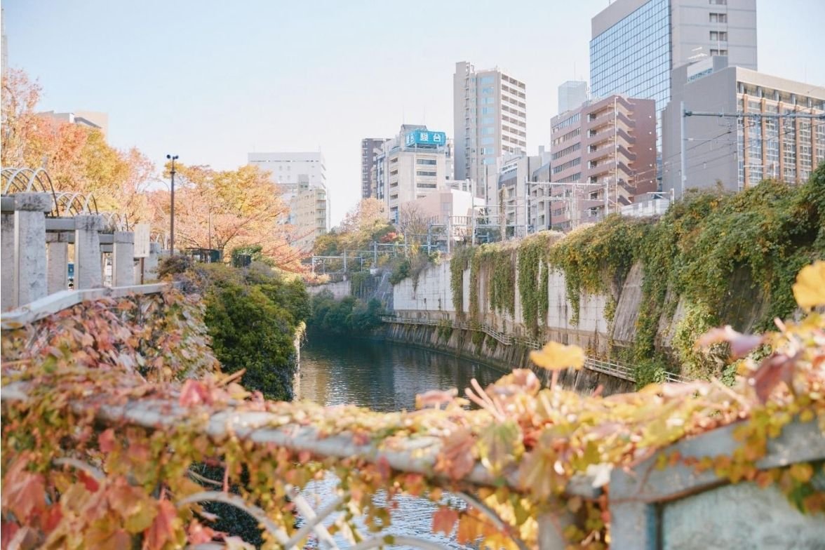 今回のゴールは、神田川にかかる水道橋。コンクリートでできた護岸の下を流れる神田川は、水面のゆらぎに街の風景を写し取りながら、道路やビルの下へと流れ込んでいきます。